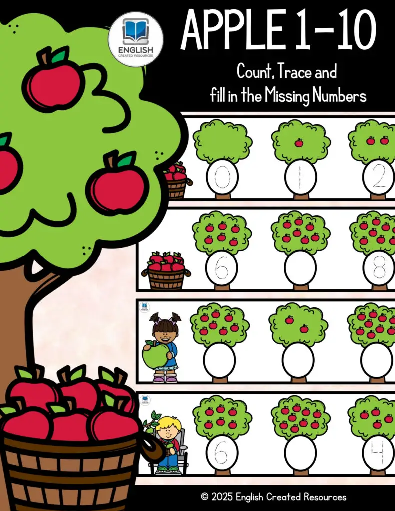 In conclusion, the Apple 1–10 Counting Activity is far more than a simple number exercise—it is a comprehensive learning experience that supports multiple aspects of a child’s growth and development. Through this engaging, apple-themed activity, preschoolers build strong foundations in numeracy, language, motor coordination, and social interaction. The use of real-world, familiar objects like apples makes abstract number concepts tangible and meaningful for young learners. Moreover, the availability of free, printable versions of such activities through English Created Resources ensures that high-quality early learning tools are accessible to educators and parents everywhere. Activities like these play a vital role in preparing preschoolers for formal schooling, nurturing curiosity, and inspiring a lifelong love of learning.