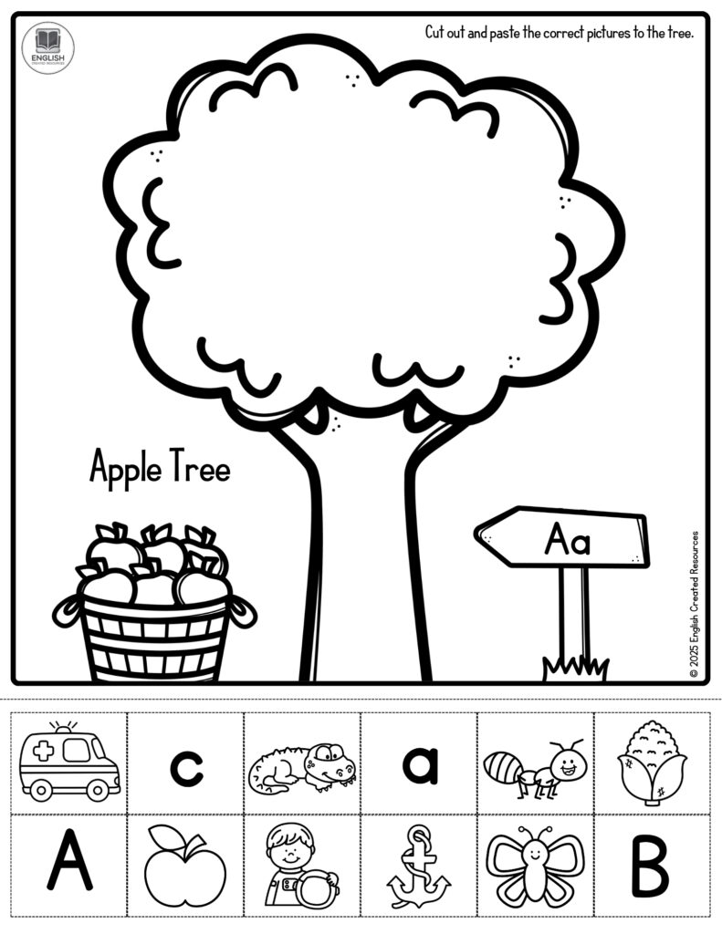 Ultimately, the Apple Tree Cut and Paste Activity is much more than a simple craft—it is a thoughtfully designed educational experience that integrates multiple areas of child development. It strengthens alphabet recognition, phonemic awareness, fine motor coordination, creativity, and communication skills. It also reinforces the joy of learning by making education interactive and meaningful. Through playful and hands-on exploration, preschoolers gain the confidence and competence they need to take their first steps toward literacy success. Thanks to resources like those provided by English Created Resources, educators can continue to inspire young learners to love letters, sounds, and the process of discovery itself.