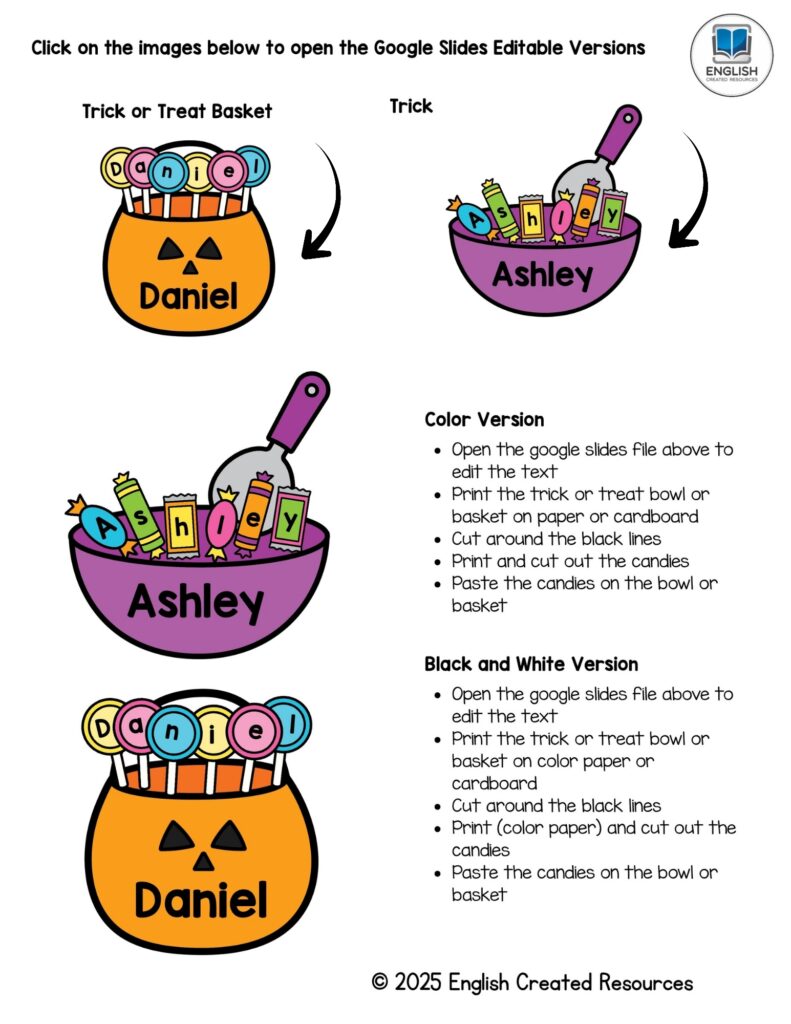 In conclusion, the Trick or Treat Candy Name Craft is much more than a seasonal art project—it is a powerful educational tool that promotes literacy, creativity, motor development, and social skills. By combining learning with holiday fun, teachers can capture children’s attention and make important lessons memorable. For preschool kids, this activity turns Halloween excitement into a meaningful learning experience that supports their growth in many essential areas.
