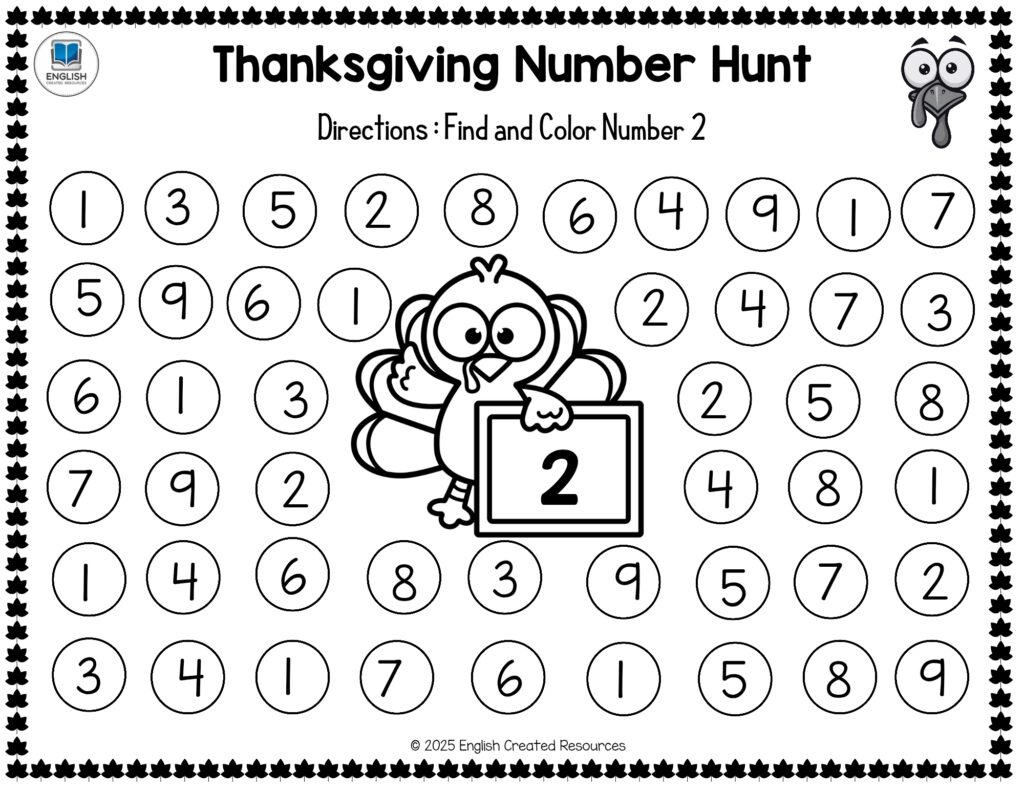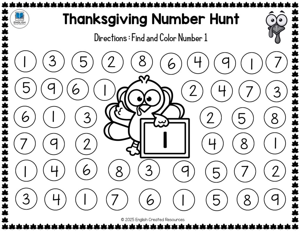 In conclusion, the Thanksgiving Number Hunt is far more than just a holiday worksheet—it is a valuable educational experience that nurtures multiple aspects of early childhood development. It enhances number recognition, strengthens fine motor and cognitive skills, encourages social interaction, and inspires creativity. By blending learning with fun, it helps preschoolers develop a solid foundation in math and essential school-readiness skills, all while celebrating the warmth and gratitude of Thanksgiving. This joyful, hands-on activity truly captures the spirit of the season and the magic of early learning.