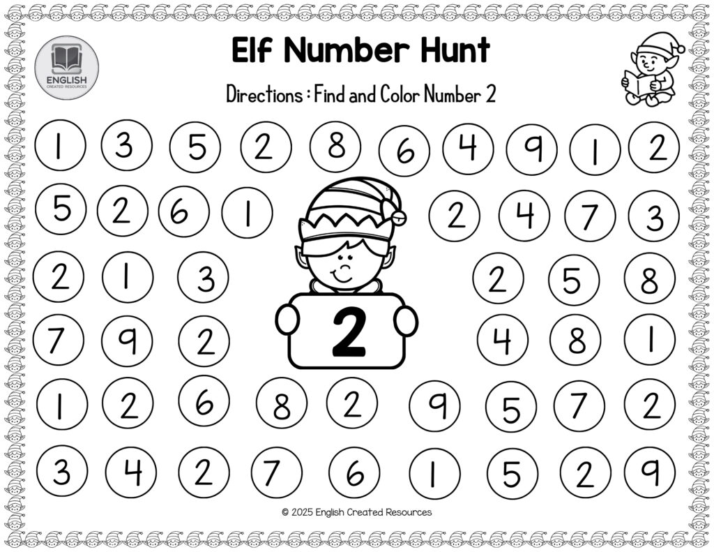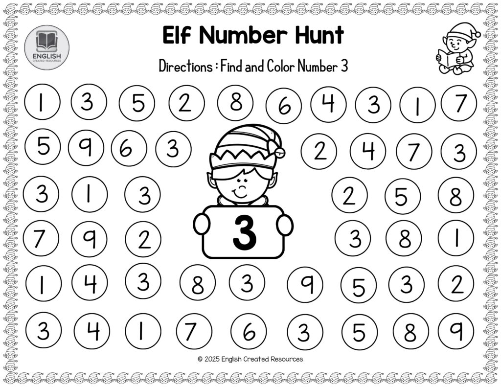 The Elf Number Hunt activity is an engaging and imaginative learning experience for preschool children, offering a blend of playful exploration and foundational numeracy practice. At this developmental stage, young learners benefit the most from activities that allow them to move, discover, and interact with materials in a hands-on way. The theme of an elf searching for numbers introduces a magical and festive element that instantly attracts children’s attention. When preschoolers are presented with a scenario that feels like a game or an adventure, they become more motivated to participate, and this increase in enthusiasm encourages deeper learning. The Elf Number Hunt provides an opportunity for children to learn in an environment that feels joyful rather than formal, helping them build positive attitudes toward early mathematics.