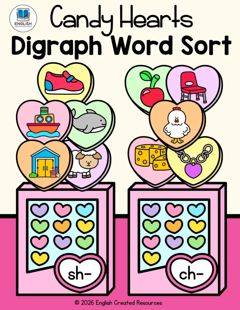 Candy Hearts Digraph Word Sort is an engaging and meaningful literacy activity that plays an important role in supporting kindergarten children as they begin to understand the structure of written language. At this early stage of learning, children are developing foundational reading skills that will influence their future success in literacy. Digraphs, which are two letters that come together to make one sound such as sh, ch, th, and wh, can be confusing for young learners because the sounds do not always match the individual letter sounds they already know. Using a Candy Hearts Digraph Word Sort helps make this abstract concept more concrete by allowing children to see, touch, and organize words in a playful and familiar context. The candy heart theme immediately captures children’s interest and creates a positive emotional connection to learning, which is especially important in kindergarten classrooms where motivation and engagement are key.
