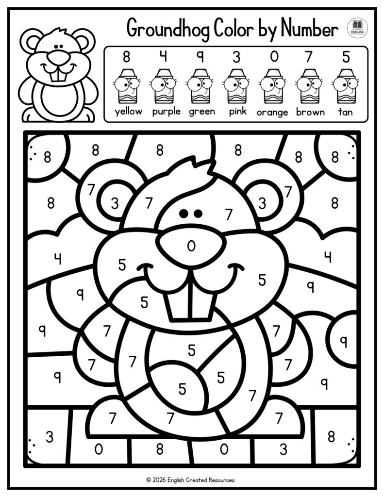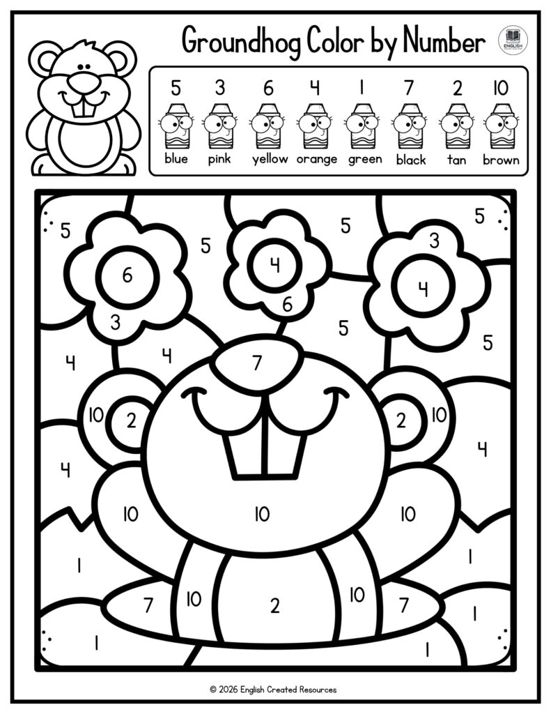 English Created Resources provides many activities of Groundhog Day for kids, including Color by Number worksheets designed specifically for preschool learners. These resources are created with child-friendly designs, clear instructions, and educational goals in mind. By offering a variety of Groundhog Day activities, English Created Resources supports teachers and parents in creating meaningful, engaging, and developmentally appropriate learning experiences for young children.