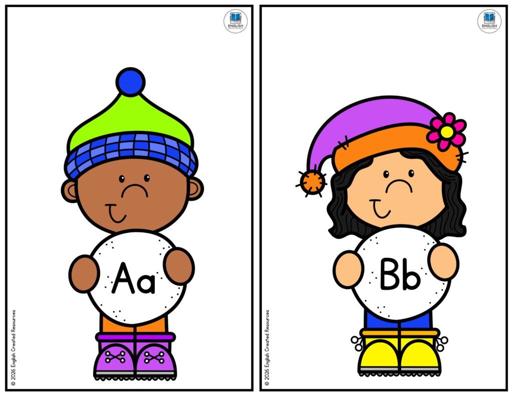 Another important aspect of this activity is the development of listening and concentration skills. To successfully match the snowballs, children must listen carefully to the word being said, focus on the initial sound, and think about which letter or picture matches that sound. This process strengthens attention span and auditory processing, both of which are essential skills for classroom learning. As children practice these skills regularly, they become better at following instructions and staying engaged in learning tasks.