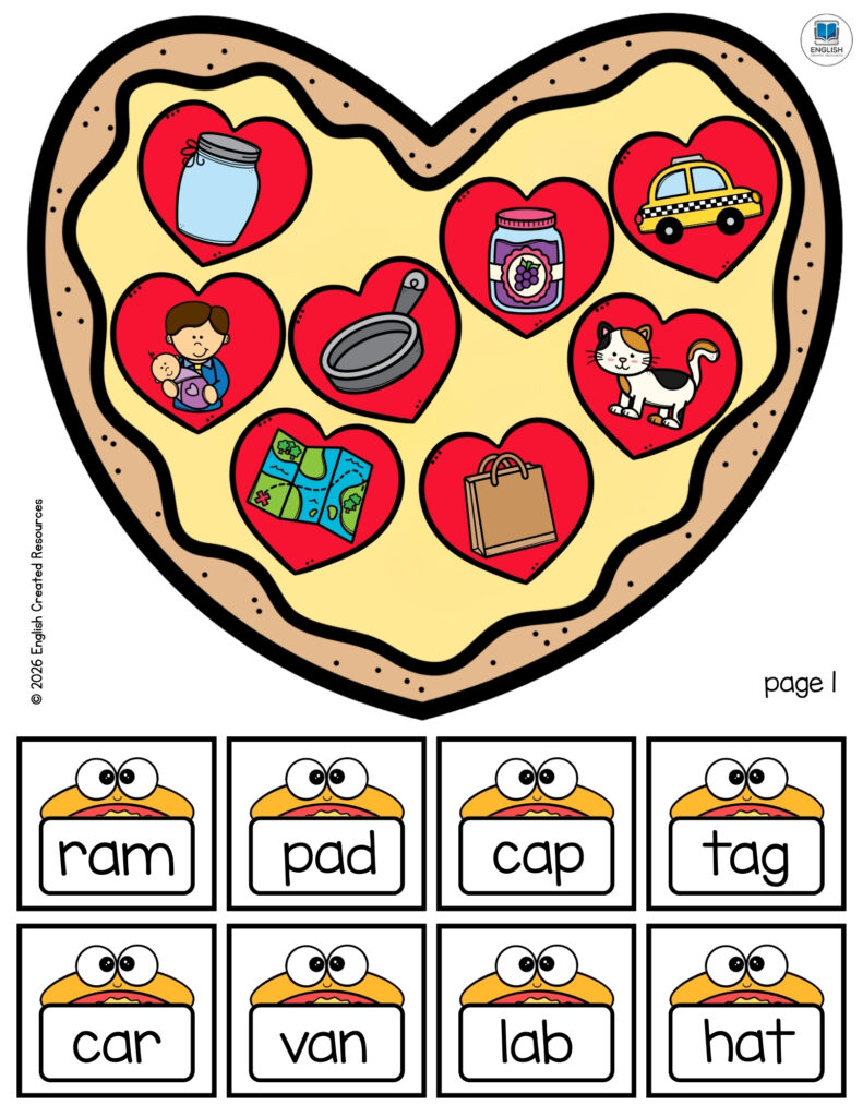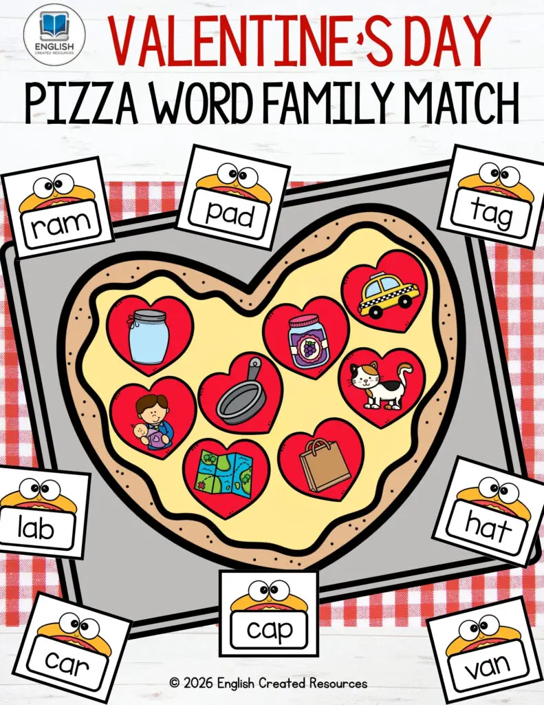 Valentine’s Day Pizza Word Family Match is also highly adaptable, making it suitable for different ability levels within the kindergarten classroom. Teachers can choose simpler word families for beginners and slightly more challenging ones for advanced learners. This flexibility ensures that all children feel successful and supported. Differentiated instruction helps prevent boredom for stronger readers while providing extra practice for those who need it, creating an inclusive learning environment.