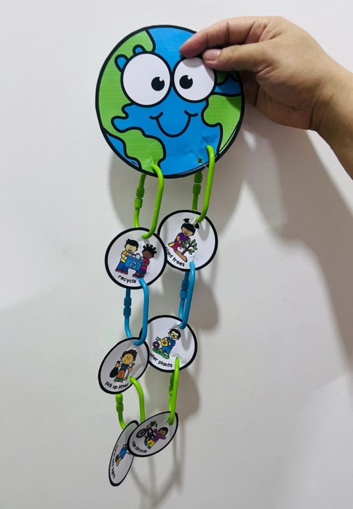 Turning off lights encourages energy conservation, which is an important habit for protecting natural resources. Watering plants helps children develop care and empathy for living things, while riding a bicycle promotes environmentally friendly transportation and reduces pollution.Each of these actions is simple enough for young children to understand and practice. This is what makes the activity so effective. Instead of overwhelming students with complex environmental problems, it gives them practical steps they can follow. It also builds a sense of responsibility and empowerment, helping children feel that they are capable of making a positive impact on the world around them.