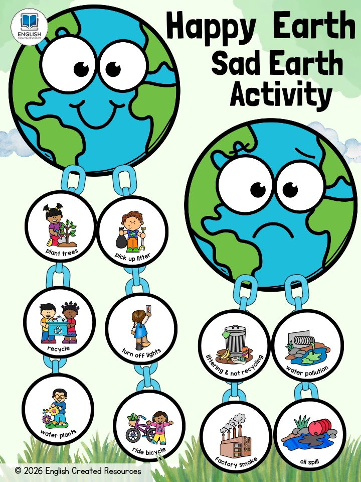 The “Happy and Sad Earth Activity” is a powerful and engaging way to help young learners understand their role in protecting the environment. Through simple visuals and clear contrasts, children can easily see the difference between actions that help the Earth and actions that harm it.