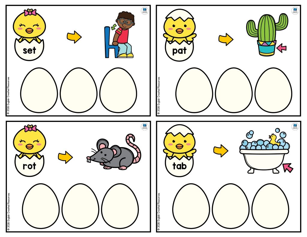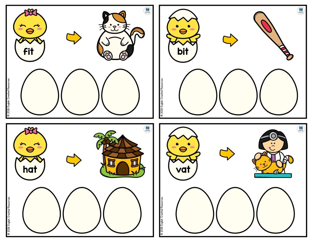 One of the most important benefits of these activities is the development of phonemic awareness. This skill involves recognizing and working with individual sounds in spoken words. As children build CVC words such as “cat,” “hen,” or “pig,” they learn to identify each sound and blend them together to form a complete word. For example, they might hear the sounds /c/ /a/ /t/ and then combine them to say “cat.” Using chick-themed materials makes this process more engaging, helping children connect sounds to letters in a memorable and meaningful way.